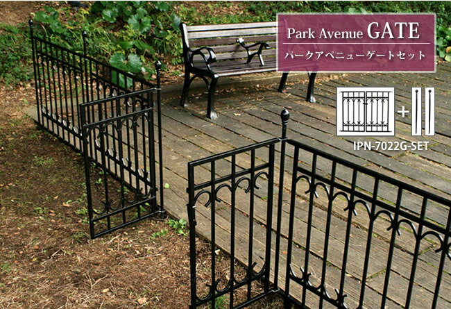 パークアベニュー ゲートセット IPN-7022G-SET ■商品名パークアベニューゲートセット(ゲート×1、ポスト×2) ■カラー/型番 ブラック…IPN-7022G-SET ホワイト…IPN-7022G-SET-WHT ■サイズ ゲート:幅 約910×高さ 約686mm ポスト:長さ 約960mm ■重量 ゲート:約4.2kg(1枚) ポスト:約0.4kg(1本) ■材質 スチール(粉体塗装) ■組立区分 完成品 ※設置には作業が必要です。