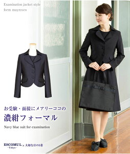【お受験スーツ】 2枚重ね襟 濃紺アンサンブル(鹿の子織り) 5号〜21号 3つボタン お受験 紺 スーツ 学校説明会 面接 ジャケット レディース 卒園式 卒業式 ママ 母 学校見学 百貨店 学校訪問 ワンピース【3着チケット対象】【送料無料】 LEV-0504