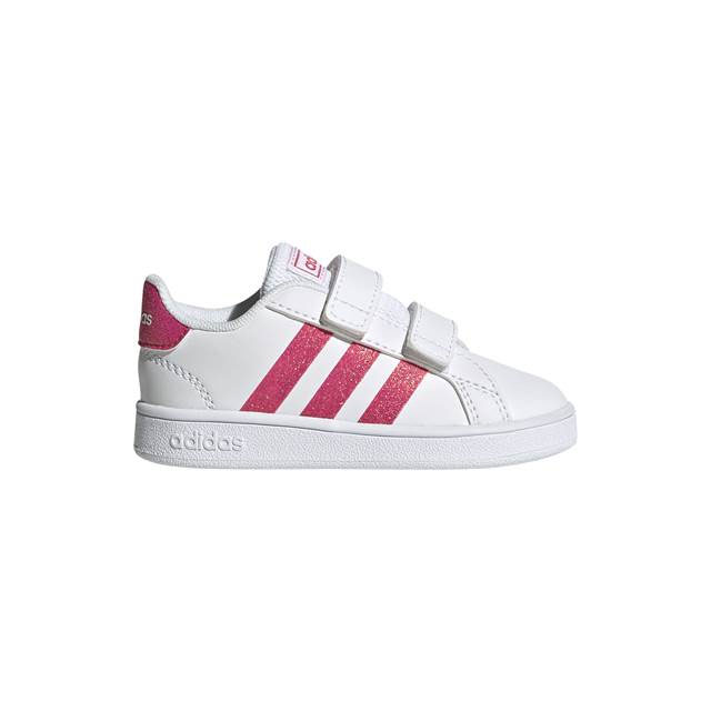 アディダス テニス シューズ ジュニア キッズ グランドコート / GRAND COURT 靴 スニーカー 白 ホワイト WHITE ベビー クッション性 ウルトラソフト スリーストライプス 面テープ式クロージャー adidas EG3815