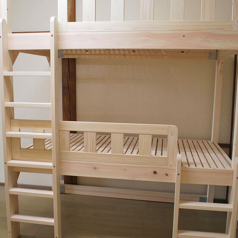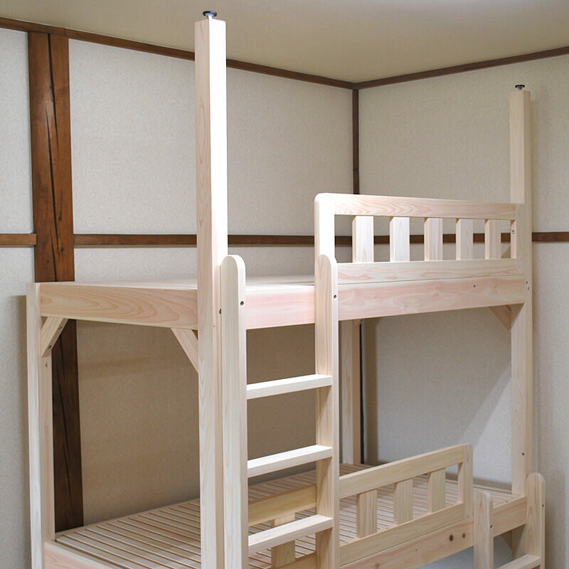 [サイズ変更可能]国産ひのき子供から大人まで使えるコンパクトサイズの二段ベッド【無塗装仕上げ】
