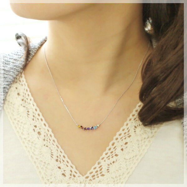 K10WG・PG アミュレット/七色/マルチストーン/マルチカラー/レインボ− ネックレス DETAILサイズ 縦 6mm 横 26mm(バチカン含)チェーンの長さ:40cm(37cmアジャスト可)地金K10ホワイトゴールド/K10ピンクゴールド使用石シトリン(ラウンドカット 3mm)ガーネット(マーキスカット 4×2mm)ロードライトガーネット(スクエアカット 2.5mm)アメジスト(ハートシェイプカット 3mm)アイオライト(ペアシェイプカット 3×4mm)ブルートパーズ(オーバルカット 3×4mm)ペリドット(ラウンドカット 2mm)※7石すべて天然石です。